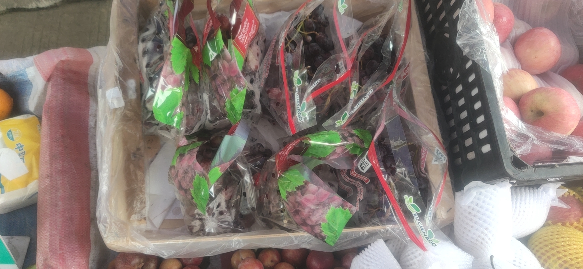 葡萄12 苹果5.5 饼干10元一盒 橙子5元 按时价